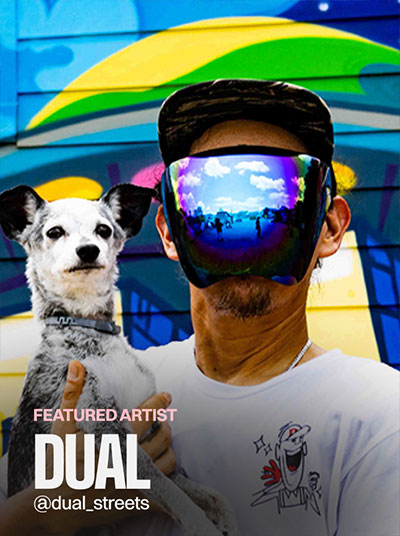 DUAL bridges the worlds of street and fine art, exploring the tension between mass recognition and anonymity. His bold lines, crisp color fields, and layered compositions inject urban energy into the everyday, offering a striking glimpse of Houston’s street subculture, whether you asked for it or not.
