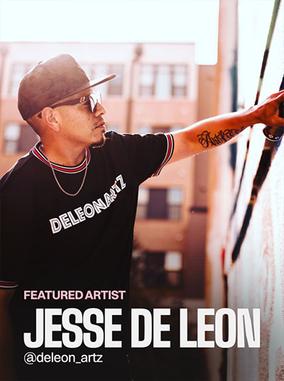 Houston artist Jesse De Leon merges street art, typography, and storytelling in bold, layered murals. His work captures the energy of the city while celebrating its culture and pride. Known for collaborations with Houston’s major sports teams, Jesse’s art moves between walls, arenas, and the pulse of the community.