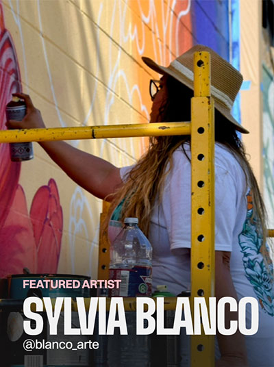 Self-taught and guided by intuition, Sylvia Blanco paints with emotion, culture, and color. Her vibrant murals celebrate people, nature, and heritage through realism and joyful energy. Using latex, acrylic, spray, and oil, Blanco brightens public spaces and connects deeply with viewers through her art’s balance and beauty.